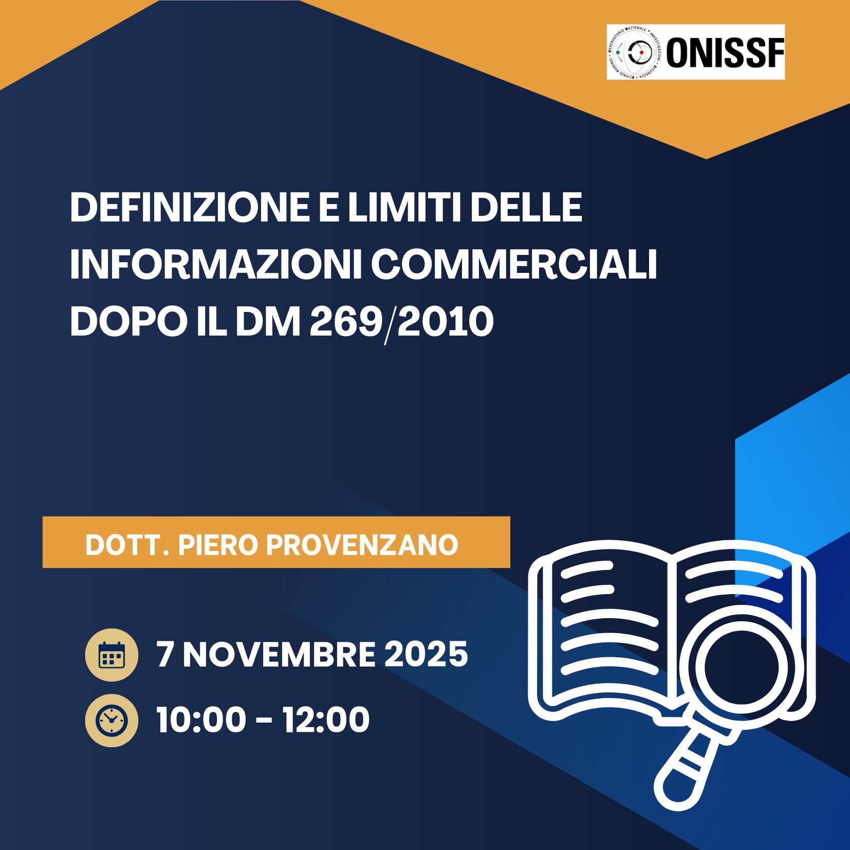 Definizione e limiti delle informazioni commerciali dopo il DM 269/2010con il Dott. Piero Provenzano – 7 Novembre ore 10.00