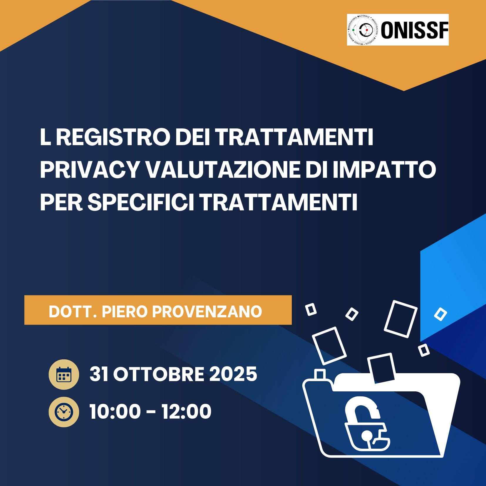 Il registro dei trattamenti Privacy Valutazione di impatto per specifici trattamenti con il Dott. Piero Provenzano – Ven, 31 Ottobre ore 10.00